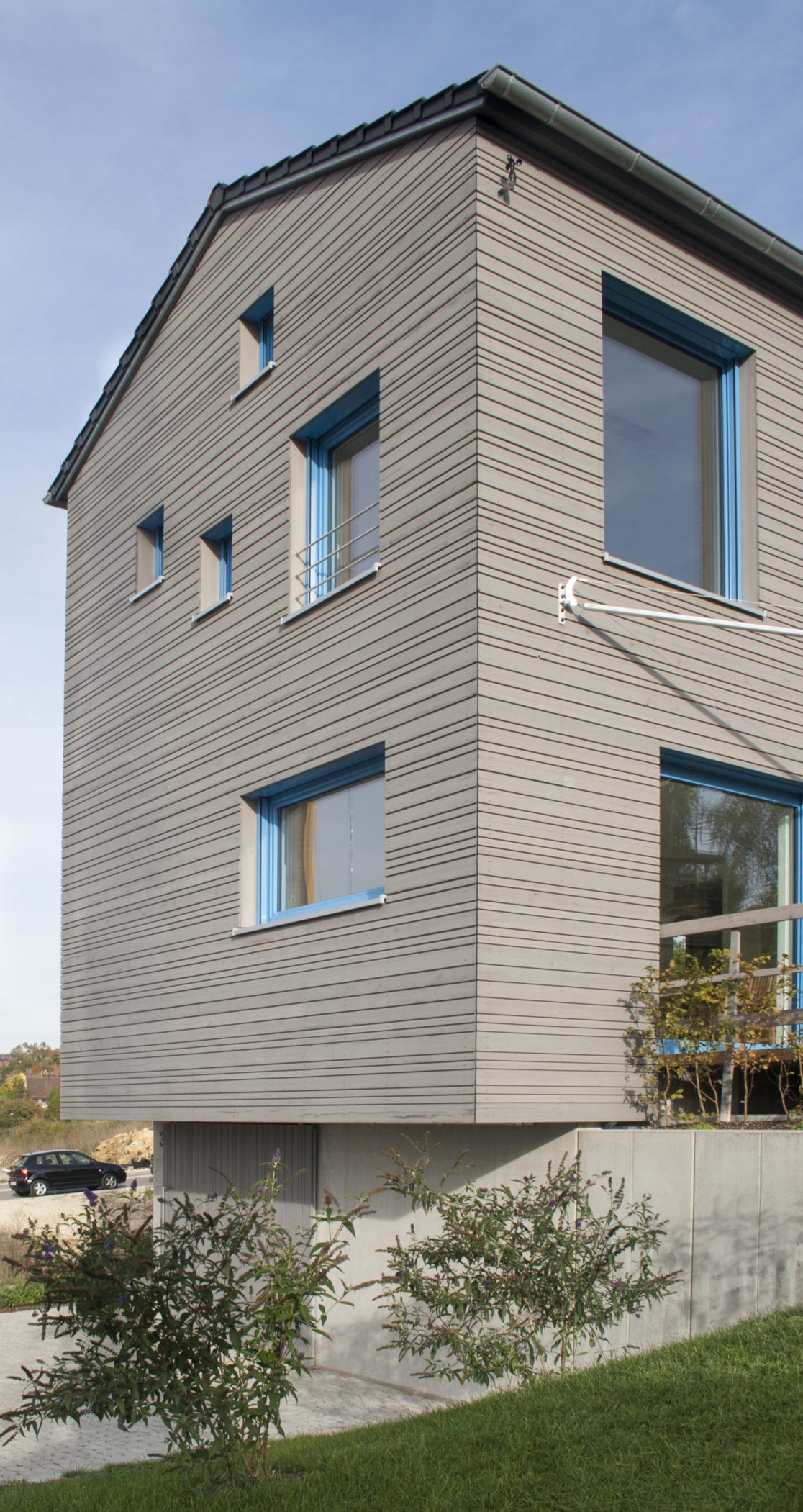 Das Projekt kombiniert eine schnelle und präzise Herstellung mit einem individuellen Entwurf. Die Hanglage mit den Ausblicken bildet hierzu den spannenden Kontext.