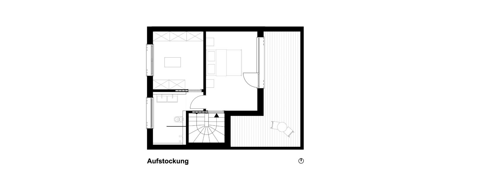 Das Projekt schafft gestalterisch und technisch modernen Wohnraum in bestehender Bausubstanz. Die Holzaufstockung auf Betonskelettkonstruktion bindet sich durch die geschickte Fassadengestaltung unauffällig ein.
