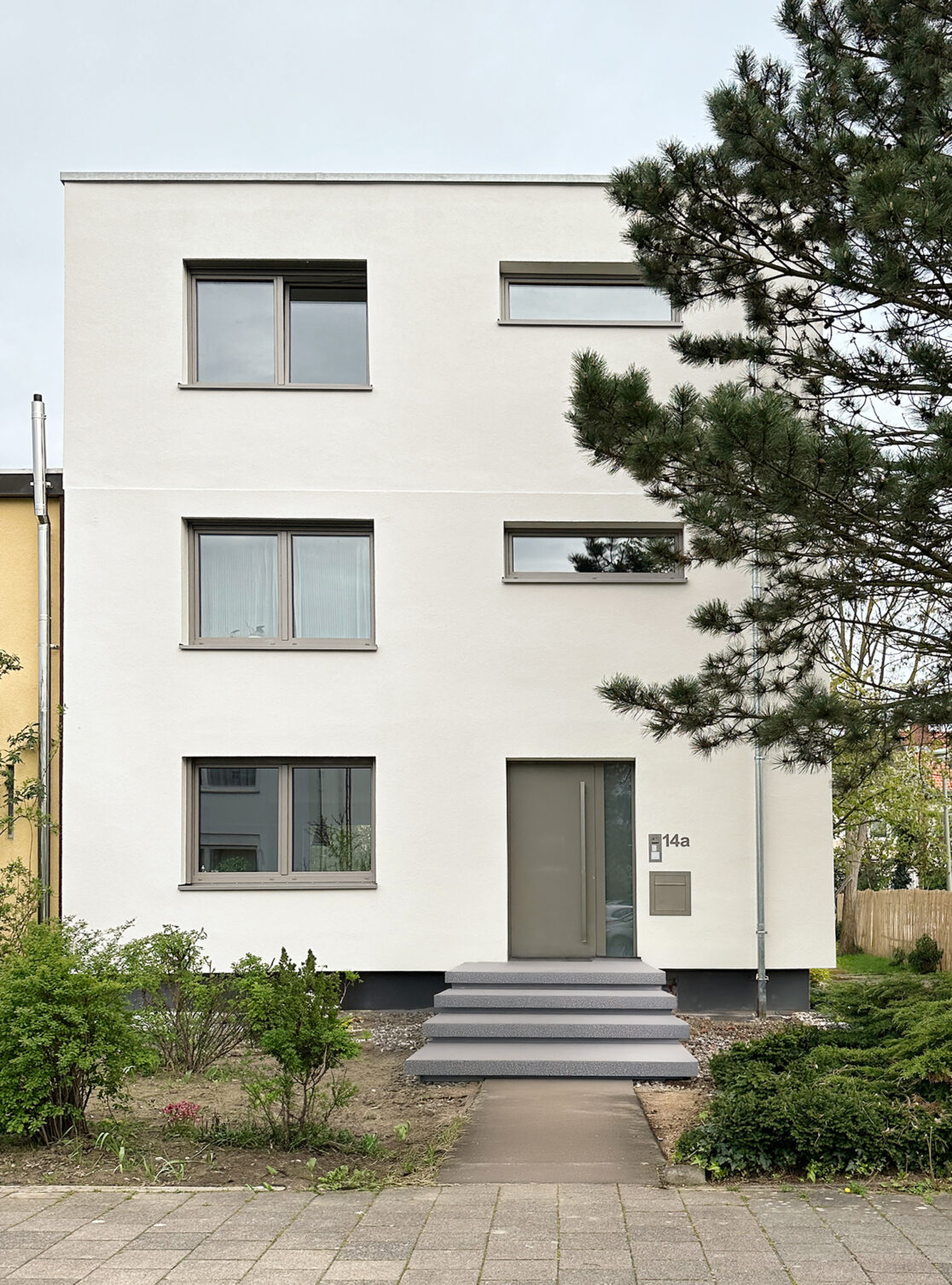 Das Reihenendhaus von 1963 wurde einer umfassenden Sanierung und Modernisierung unterzogen. Vorgabe waren die aktuellen Ansprüche an Wohnkomfort und Nachhaltigkeit. Ziel war die Erfüllung des KfW 70 Standards.