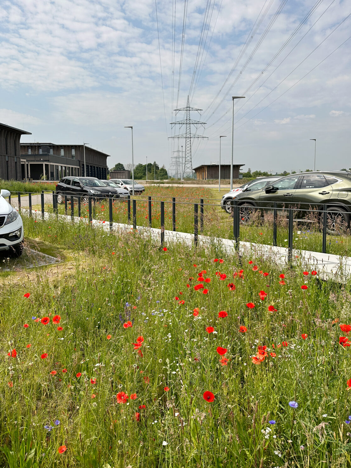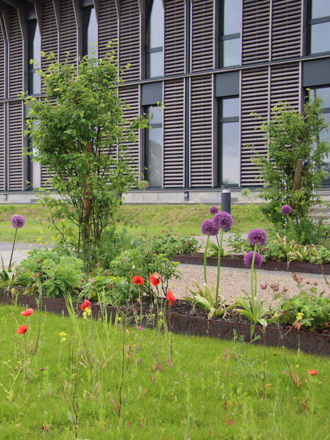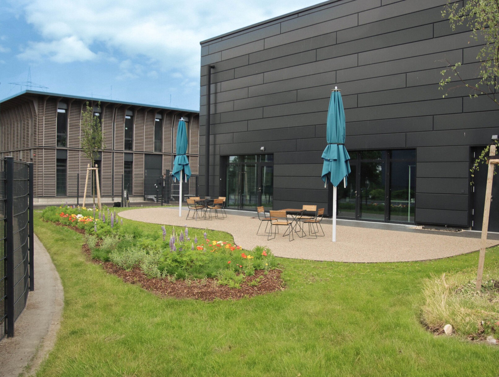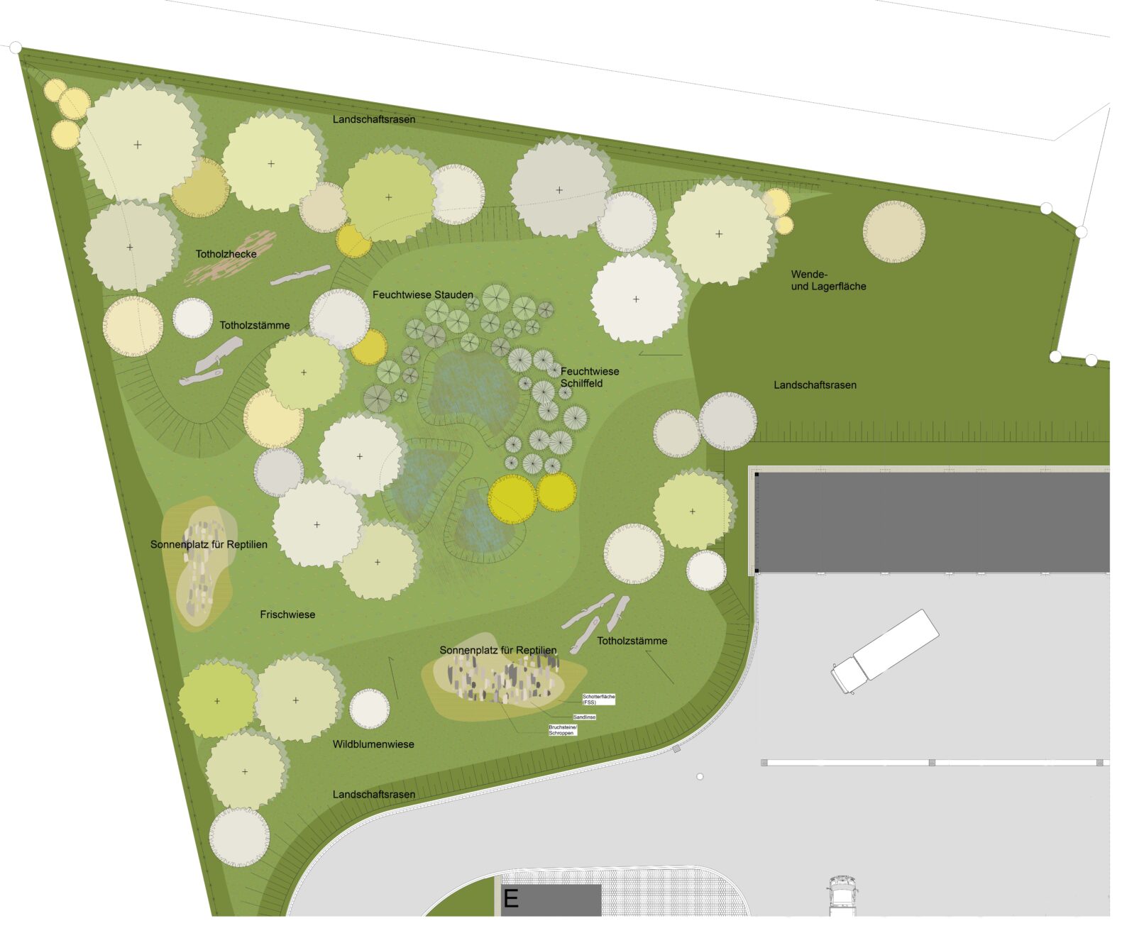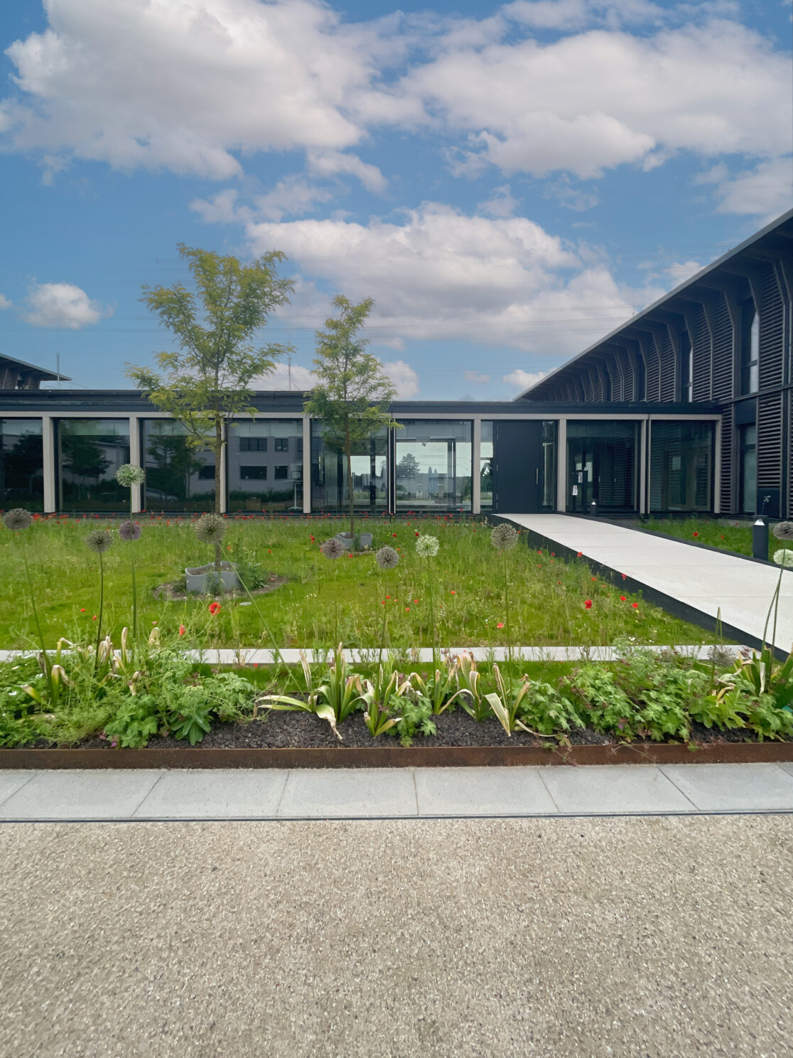 Durch die Schaffung strukturreicher Lebensräume fördert LR Architekten gezielt eine hohe Biodiversität und bringt das moderne und umweltbewusste Firmenimage der Transnet BW GmbH zum Ausdruck.